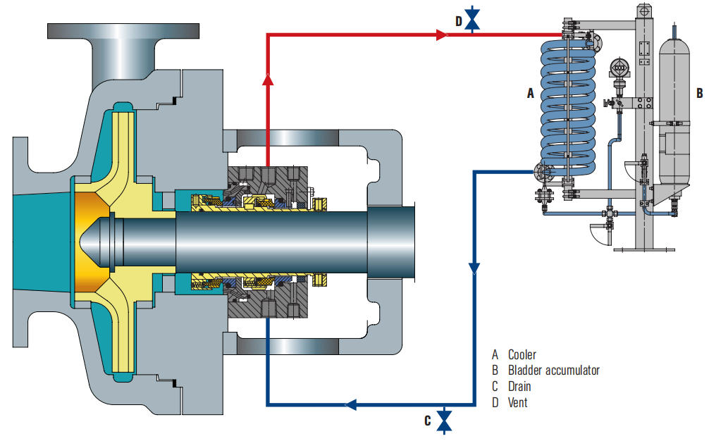 Rate fluxus fluidi rutilantium sufficiens esse debet ad removendum calorem a camera sigillo mechanico.